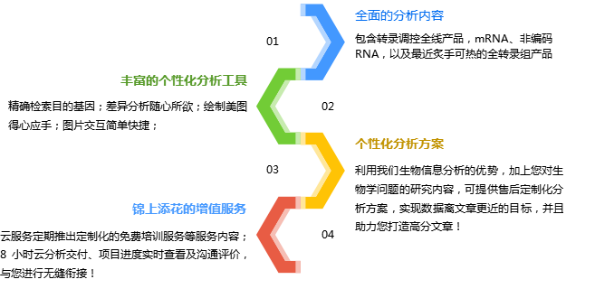 為了解決上述的問題,我們公司重磅推出“云次賬號”這一產品。簡單來說就是我們開發(fā)了集成生物信息分析軟件、數據庫以及云計算為一體的生物數據信息分析平臺。而“云次賬號”是在傳統(tǒng)的科技服務的基礎上利用百邁客云集成的標準分析流程及個性化分析工具,為廣大科研君提供從建庫測序到文章發(fā)表的一站式服務!